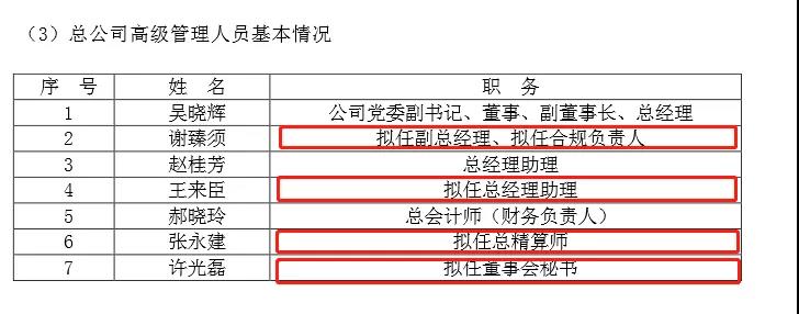 报告中高管人员基本情况一栏,7个职位有4位为拟任管理人员。加上董事会、监事等高管,一共有7位拟任干部,董事长一职更是空缺。